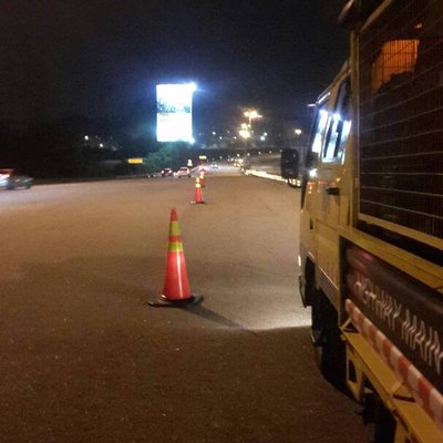 0110hrs Awas!. Pokok tumbang di persimpangan selepas Jambatan Pulau Pinang (Bayan Lepas-Georgetown). Lorong kiri terhalang. Trafik perlahan.